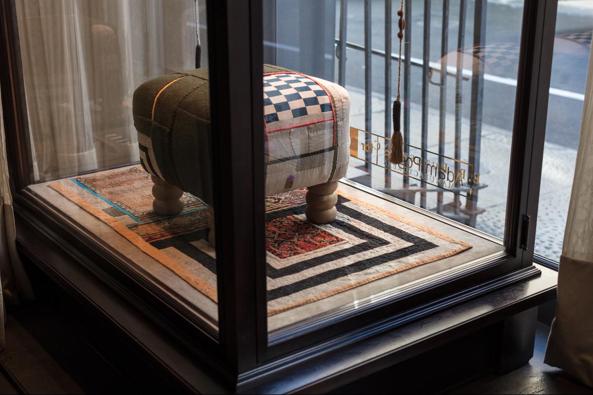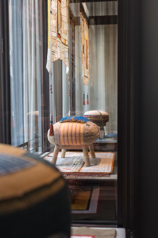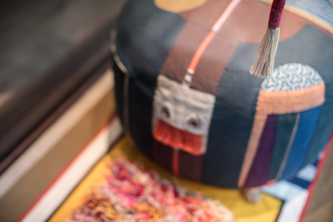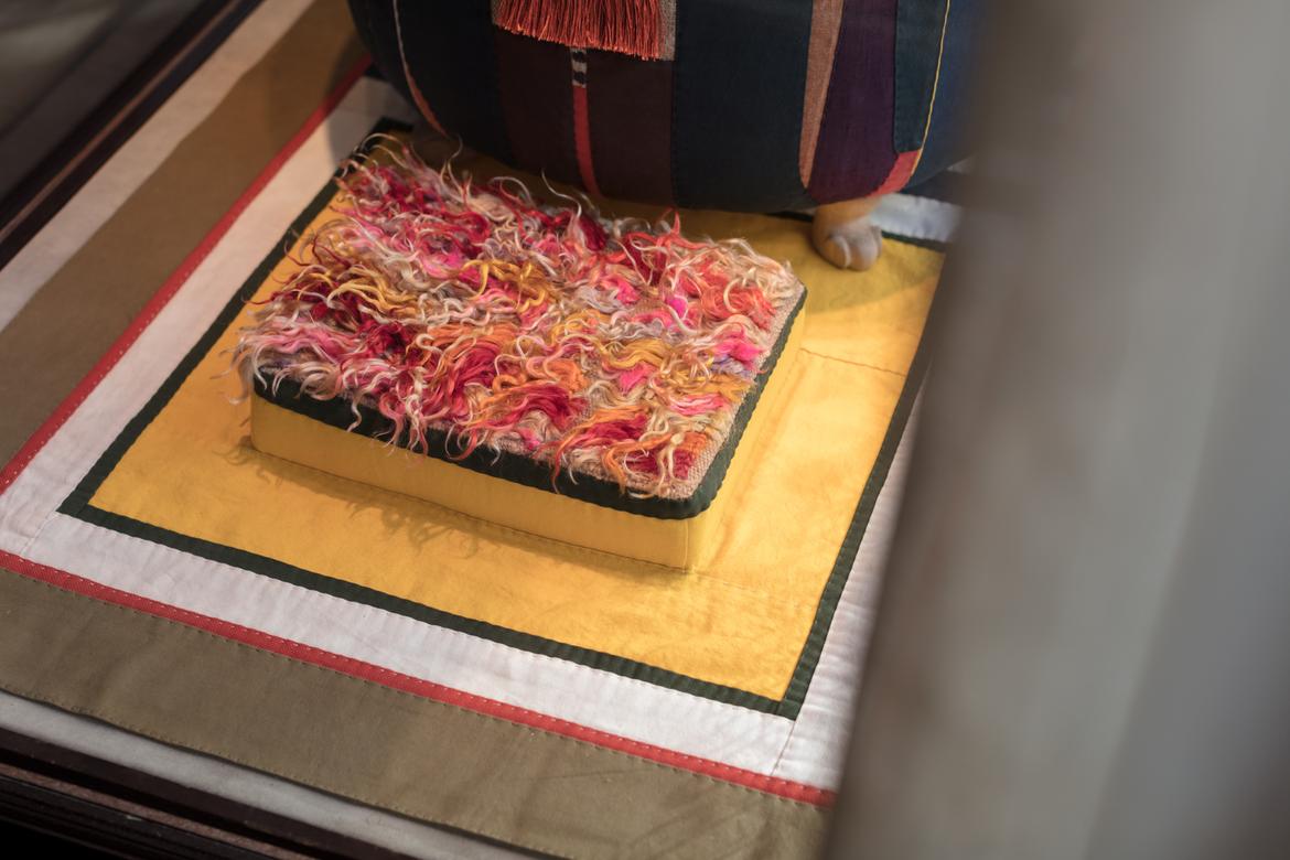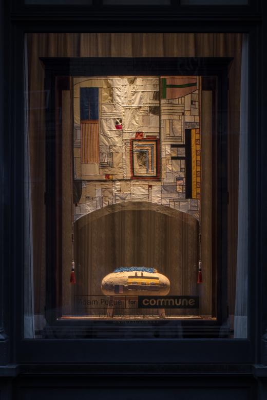Adam Pogue works with Commune on product and special projects using textile remnants and vintage fabrics that Commune finds along the way. Obi fabrics from a trip to Japan, army canvas used for upholstery, and discarded carpet and drapery remnants are all reconfigured to create a new textile experience. Adam creates compositions that are familiar and yet completely original; with hand stitched details, pops of unexpected color, and unconventional shapes and material combinations.